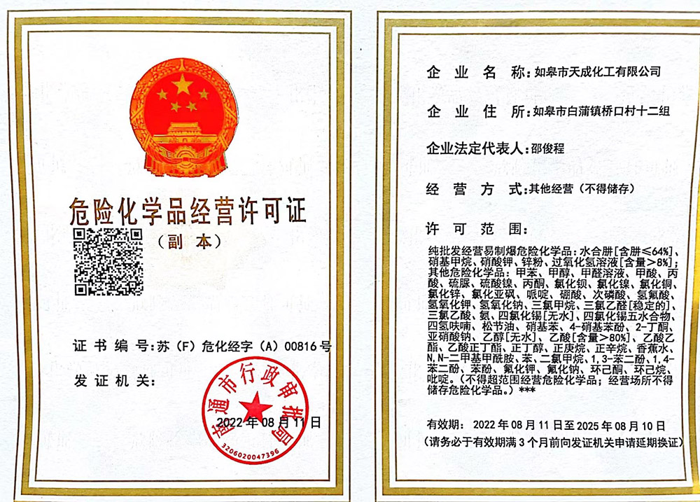 如皋市天成化工專業(yè)為您服務: